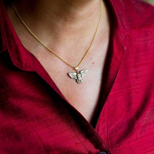 This flying barn owl charm in 14K gold would be a very unique addition to a gold charm bracelet. It is small, but extremely detailed. The charm measures about 1" across the wings and is about 1/2" tall. You can order a bracelet on this same page, or you can have it soldered to your own special bracelet.