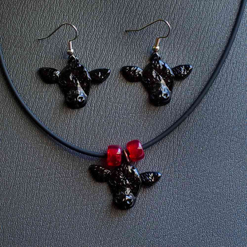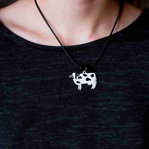 This handsome enamel Black Angus cow necklace has wonderful detail and a great expression! It measures 3/4” tall and 1 1/4” wide from the tip of the right ear to the tip of the left ear. Pair it with the matching enamel Black Angus cow earrings for a one-of-a-kind gift item!