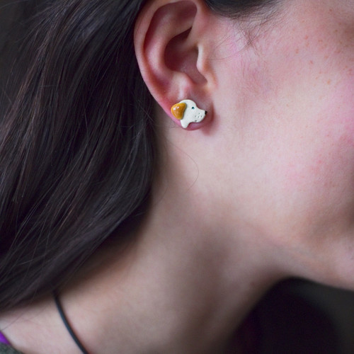 This pair of enamel black lab post earrings really represents the color version of the Labrador that is the most popular. And with good reason! I think the work "Lab' in most people's minds conjures up the image of the shiny black version of the dog.