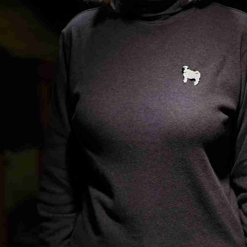 This enamel black pug brooch was conceived a little while ago. I love the black variation of this breed, and believe that the enamel paint tends to bring out the detail in this pin rather than obscure it. The piece is 1 1/4' high and 1 1/2' wide.