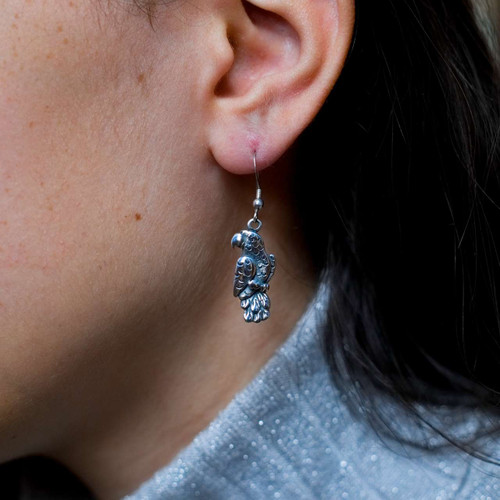 Eye catching green enamel parrot necklace is perfect for anyone who loves an Amazon parrot, and wants to let her friends know! Be prepared for a lot of “where did you get that” comments when you wear this beautiful necklace. The parrot measures 1” tall and 3/8” wide and comes on an 18” rubber cord with two glass beads.