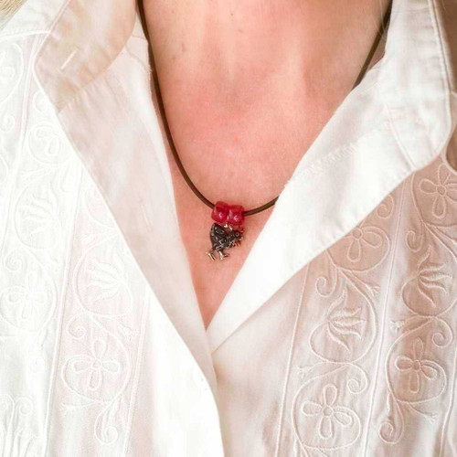 Wear this cute Rhode Island Red chicken necklace to celebrate this lovely breed. Hand painted in gorgeous translucent colors. The pendant measures 3/4” tall by 1/2” wide, and comes ready to wear on an 18” nylon cord. Choose your favorite bead color!