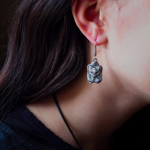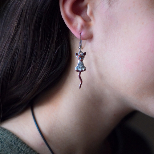 Ah, the beautiful Siamese! I wanted to capture the “look†of these blue-eyed beauties in my pair of enamel Siamese Cat earrings. Each earring is approximately 3/4†tall and 1/2†wide.