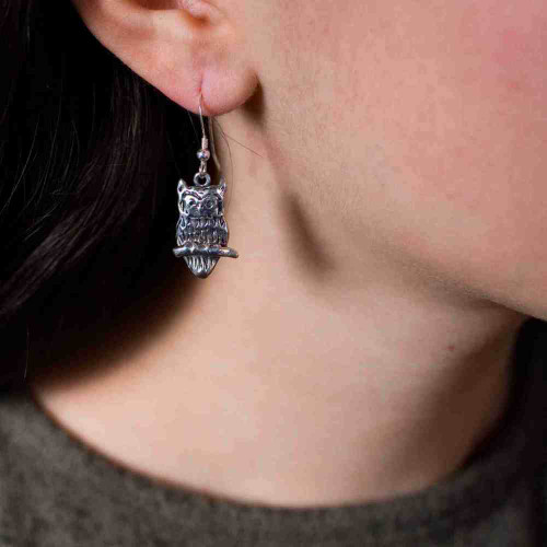 This pair of blue and green enamel owl earrings will be a lovely addition to a jewel-toned outfit.