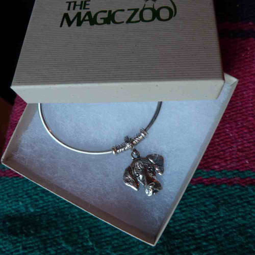 I think lop eared rabbits are so adorable. I've met a few in person, and from that experience I had to design some for my jewelry collection. If you have a lop-eared companion, congratulations for sharing your home with one of the cutest animals alive. The sterling silver lop eared rabbit charm is attached to my own unique Magic Zoo European-style bead. This sterling silver bead and charm is slipped onto the sterling silver European-style flex bracelet. Next two decorative sterling silver beads are added to either side of the Magic Zoo European-style bead. To finish off the design and keep every thing in place, 2 shiny silver stopper beads are placed on either side of the decorative beads. It will come to you assembled and ready to wear! The little balls on either end of the flex bracelet screw on and off. That way you can add additional beads whenever you want. The bracelet is 7 1/2” and fits most wrist sizes up to a medium. Would you like a different sterling silver Magic Zoo animal charm on your bracelet? Contact me through the website, or call me at 800-670-3703. Any one of my sterling silver charms can be made into a lovely European-style bracelet similar to the one you see here.