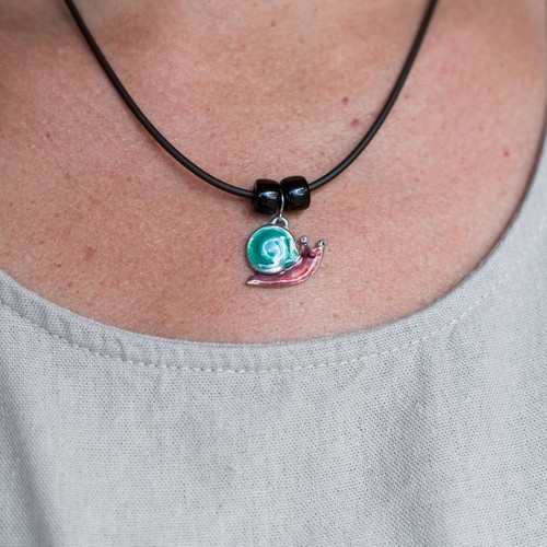A fine pewter snail necklace with personality! This little fellow looks like he may be up to some kind of mischief in the garden. But still...I think snails are charming!