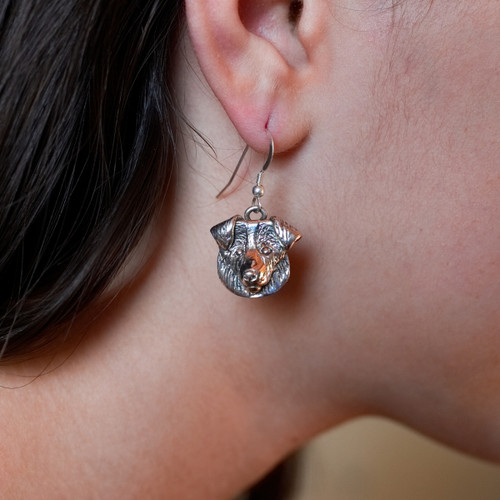 My sterling silver Australian Shepherd pendant was modeled from a photograph; while working on it I familiarized myself with this gorgeous breed. My Aussie pendant is 3/4' tall and 3/4' wide between the ears.