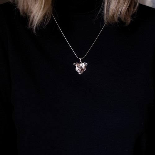 I designed my sterling silver happy pitbull charm because I've seen so many smiling pitbulls, even in my neighborhood! I can see why they were high on the list of babysitters back in the early part of the 20th century, and even went by the name of “the nanny dog!†Who wouldn't love and trust a face like that? This charm is a large one; about 1 inch by 1 inch.